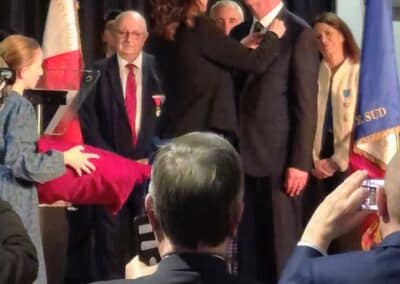 Décoration qui lui fut remise au nom du Président de la République, par Charlotte Parmentier-Lecocq Ministre déléguée chargée de l’Autonomie et des Personnes Handicapées, en reconnaissance de ses 40 années d’engagement au service de la collectivité, pour sa région et sa commune de Templeuve-en-Pévèle dont il est Maire depuis 2001.