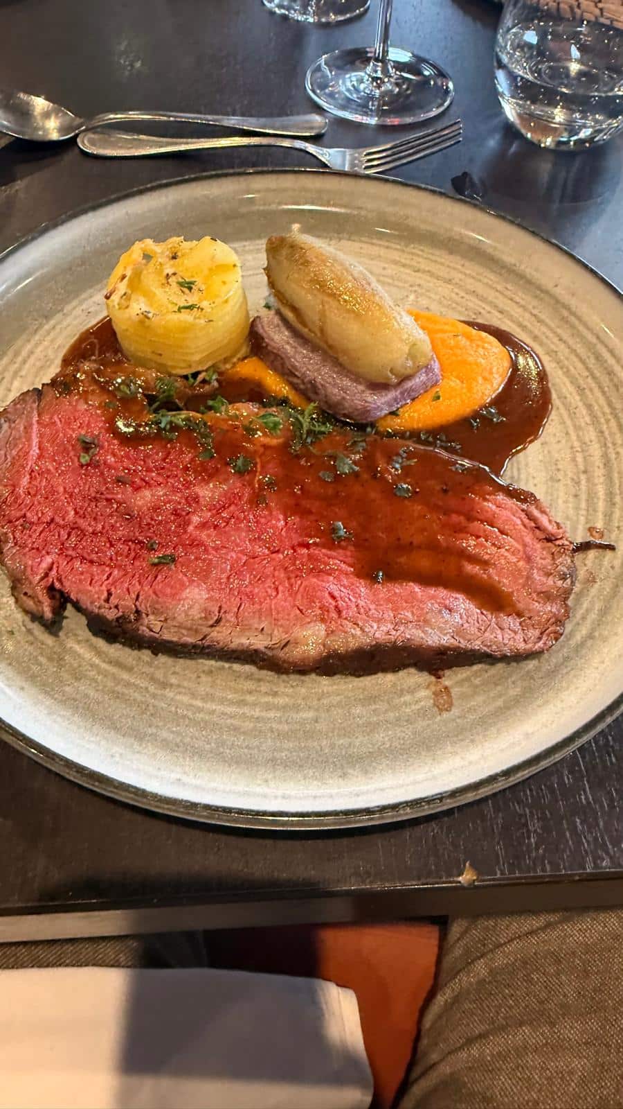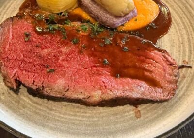 – D’une carbonnade flamande /frites(plat de substitution jambon à l’os)accompagné de vin et de boissons softs